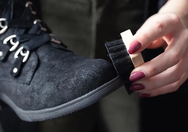 Am Anfang entfernt Ihr den gröbsten Schmutz. Je nach Verschmutzungsgrad sollte dies mit einem feuchten Lappen und etwas Seife geschehen. Hartnäckigen Dreck könnt ihr auch (vorsichtig) mit einer weichen Bürste abreiben. Besonders bei Wildleder, welches empfindlicher ist als Glattleder, solltet Ihr keine harten Borsten verwenden.